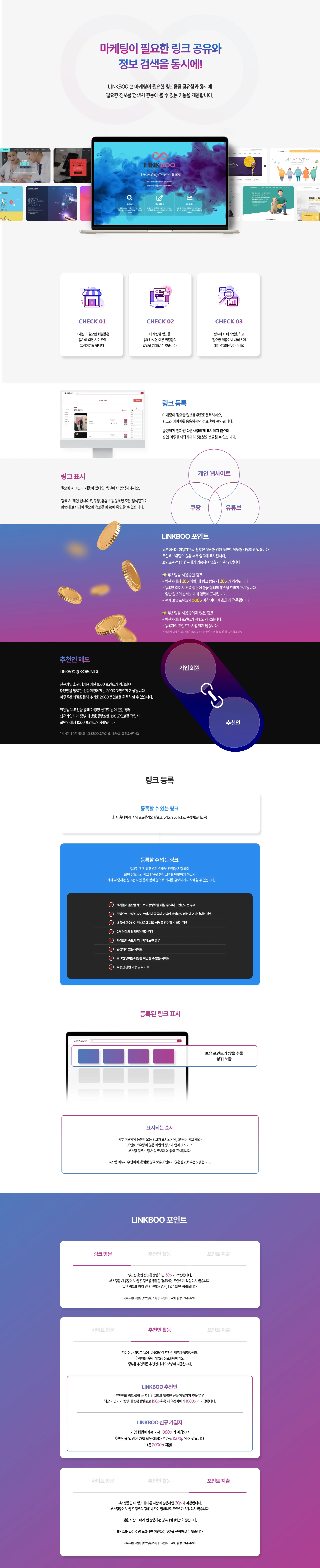 링부(LINKBOO)는 개인과 기업이 함께 마케팅의 새로운 가능성을 열어가는 플랫폼입니다. 링부는 개개인이 서로의 마케팅을 지원하고, 아이디어를 공유하며, 더 나은 성과를 만들어낼 수 있도록 설계되었습니다. 다양한 마케팅 채널을 통합해 사용자에게 효율적인 마케팅 환경을 제공합니다.